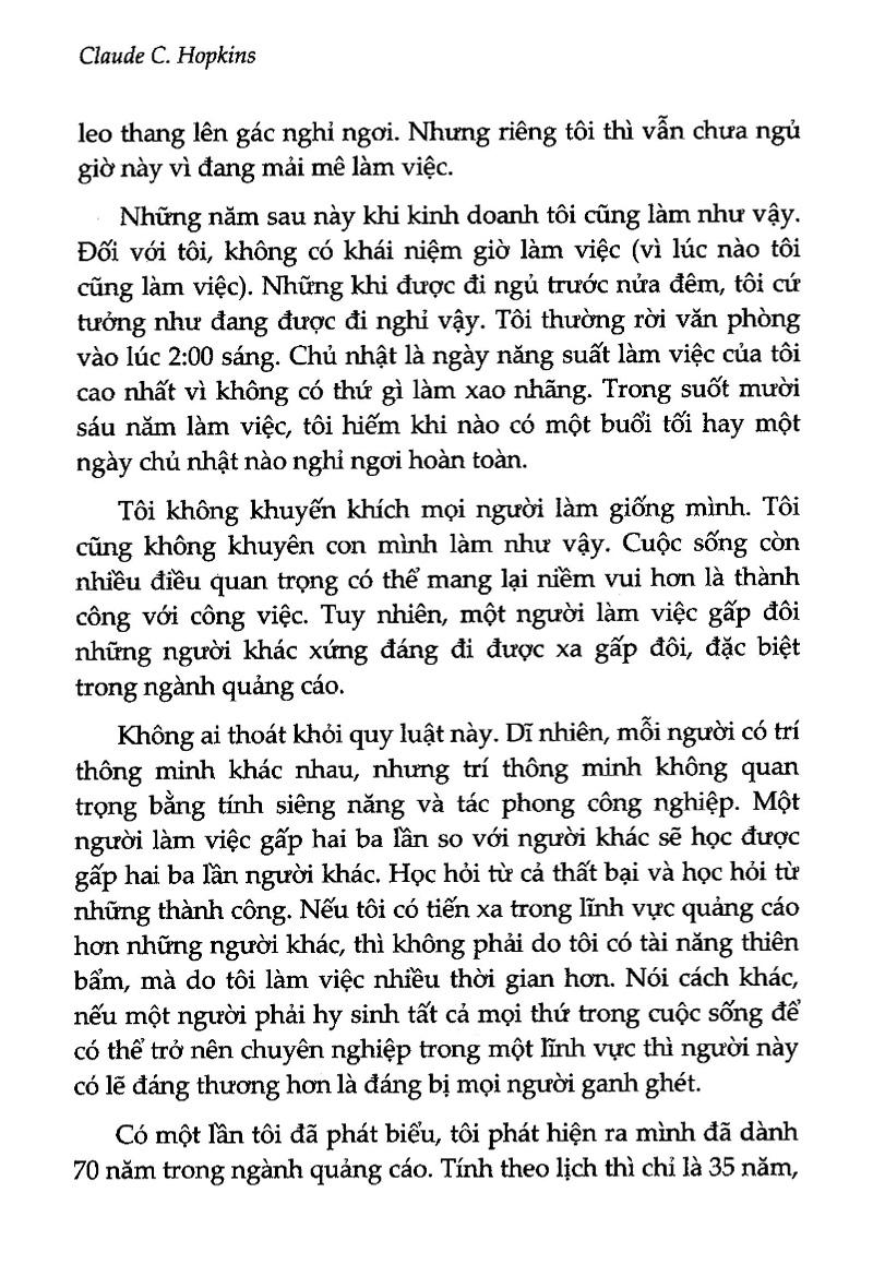 Palmolive khởi đầu chỉ với 700 USD quảng cáo thử nghiệm. Giờ đây nó là một phần của Colgate-Palmolive nổi tiếng toàn cầu. Pepsodent được sinh ra trong những đêm buồn tại một dự án thủy lợi ở Arizona. Giờ nó là một trong những nhãn hàng số một của Unilever. Goodyear đã từng chỉ dám chi 40 nghìn USD cho quảng cáo mỗi năm vì chả ai tin là có người quan tâm đến lốp xe. Giờ nó là công ty lốp xe ai ai cũng biết. Hopkins khởi đầu chỉ có 100 USD trong tay. Vào cuối đời, ông là một trong những cây đại thụ của ngành quảng cáo. Bạn thực sự không muốn nghe câu chuyện về họ sao?