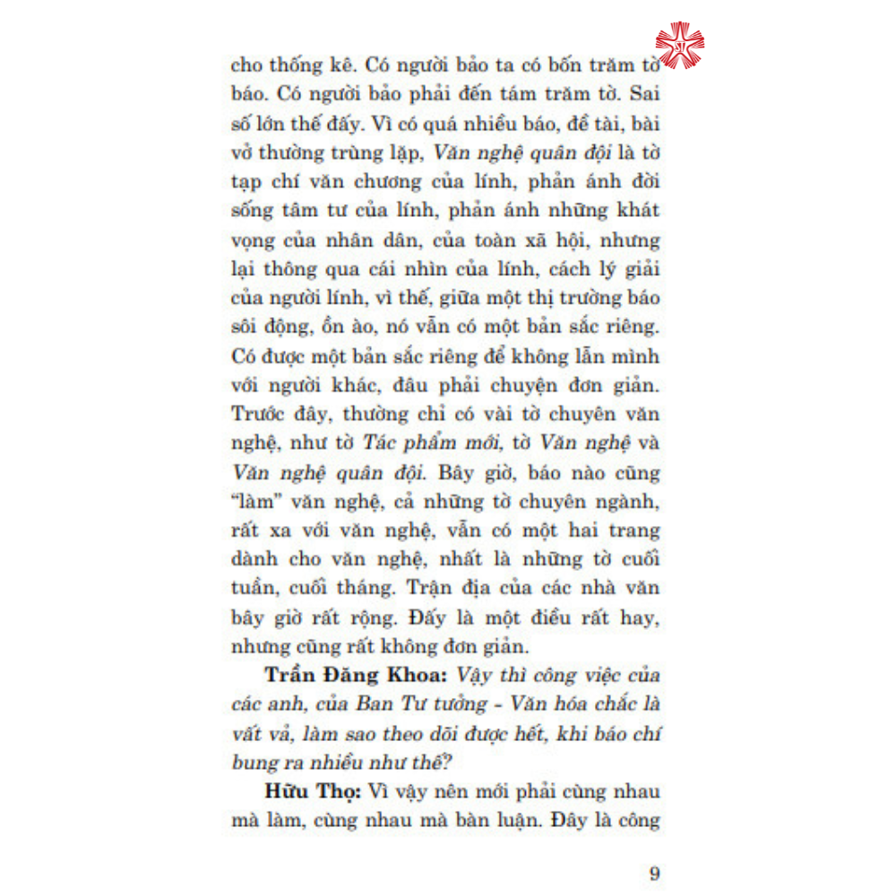 Cuốn sách xuất bản lần đầu năm 2012, nay do nhu cầu của đông đảo bạn đọc, đặc biệt là các sinh viên chuyên ngành báo chí, Nhà xuất bản Chính tả Quốc gia Sự thật cho tái bản cuốn sách trên. Cuốn sách bao gồm 29 chuyên để diễn tả sâu sắc quan điểm, thái độ, chính kiến của Nhà báo Hữu Thọ về các vấn đề thời sự nóng hổi, đồng thời giới thiệu một số phong cách tác nghiệp của các nhà báo khi tiến hành các cuộc phỏng vấn, trao đổi ý kiến với những người có trách nhiệm trong quá trình hoạt động nghề nghiệp. Cuốn sách thực sự bổ ích cho các bạn sinh viên chuyên ngành báo chí, phóng viên, nhà báo trẻ cũng như cung cấp thêm tài liệu cho bạn đọc muốn nghiên cứu quá trình tiến hành đổi mới đất nước, đổi mới báo chí dưới sự lãnh đạo của Đảng.