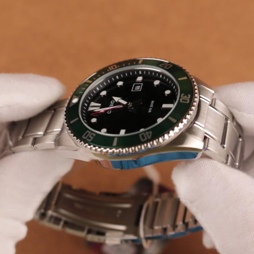 Đồng hồ Casio nam MDV-107 khác những mẫu đồng hồ Casio khác bởi có viền màu và KHÔNG có logo Marlin. Sự hiện diện của màu màu sắc đặc biệt ở phần khung bezel tạo điểm nhấn và sự khác biệt cho chiếc đồng hồ.