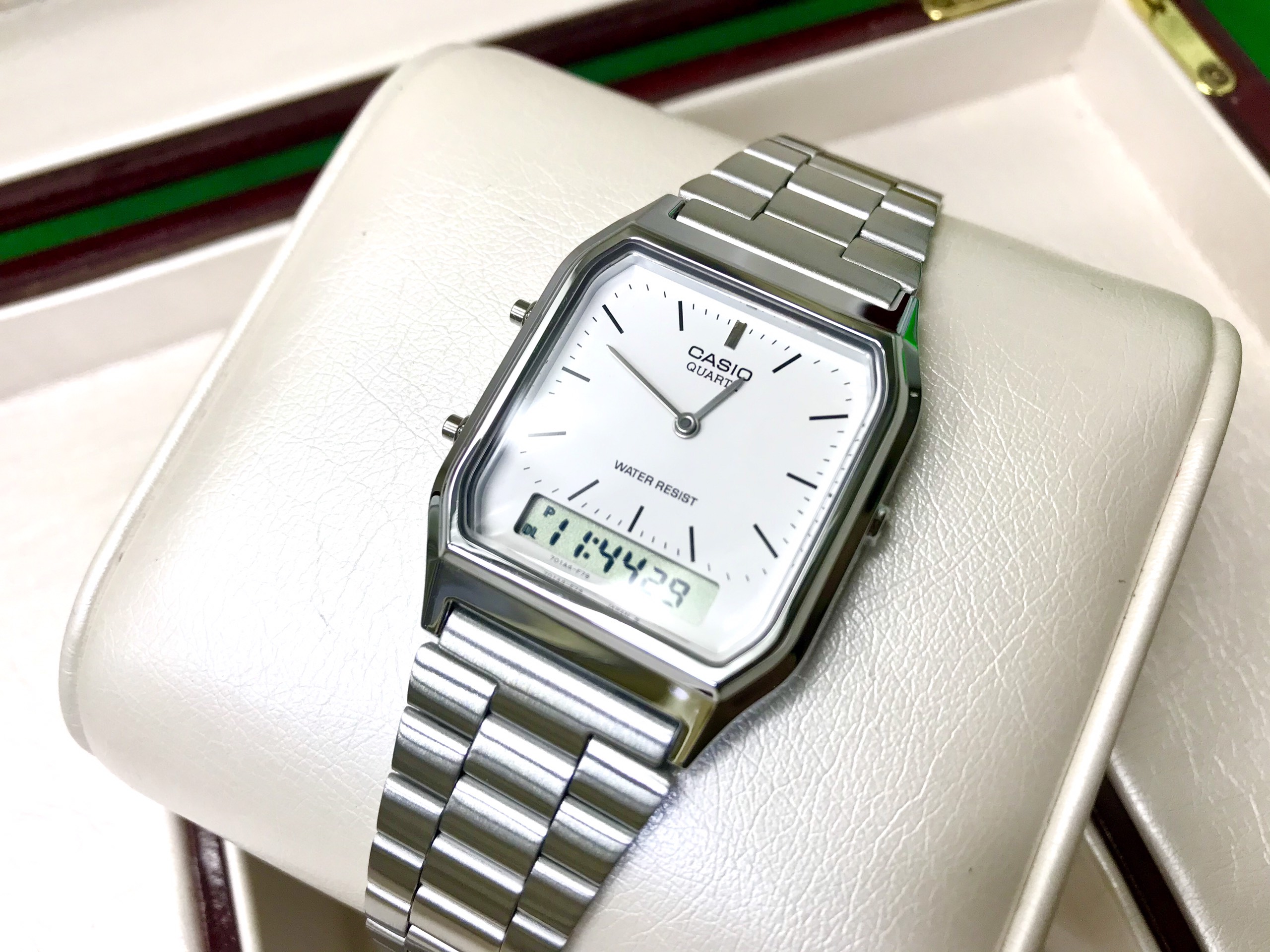 Review đồng hồ Casio AQ-230A-7DMQ mặt số vuông thiết kế sự kết hợp kim chỉ cùng ô số điện tử
