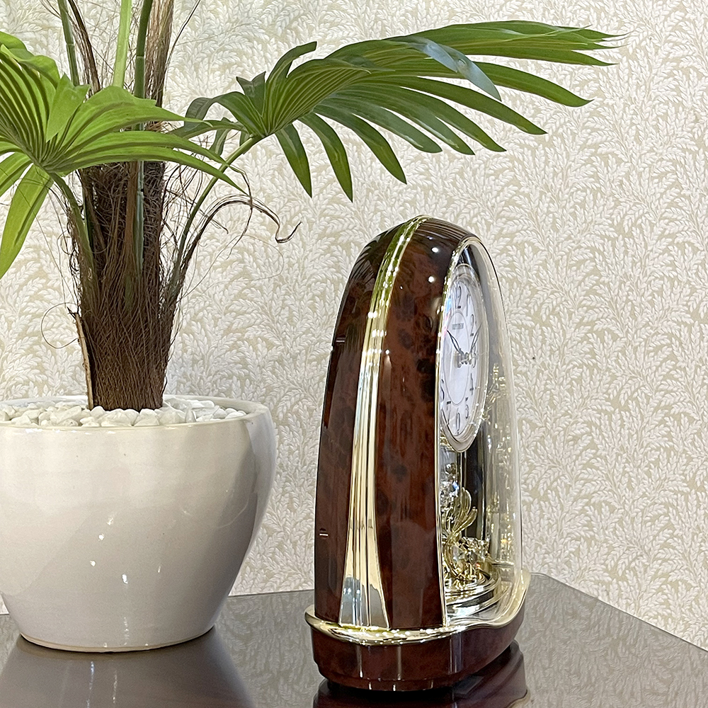 Mua tại TiktokĐồng hồ để bàn Nhật Bản Rhythm 4RH796WU23, dùng 4 pin tiểu (AA x 4). Vỏ nhựa màu nâu vân gỗ / mạ vàng siêu bền màu. Kích thước 22.5 x 29.0 x 15.5cm, trọng lượng 1.18kg. Âm thanh siêu trầm CTS ( Clarion Tone System ) độc quyền của Rhythm cho chất âm trầm, vang với 12 giai điệu bất hủ, 4 bản giáng sinh, nhạc chuông nhà thờ Westminster mỗi đầu giờ. Núm chỉnh âm lượng tiện. Mắt Cảm ứng ánh sáng tự động không phát nhạc khi thiếu sáng. Cum lắc xoay cẩn pha lê .