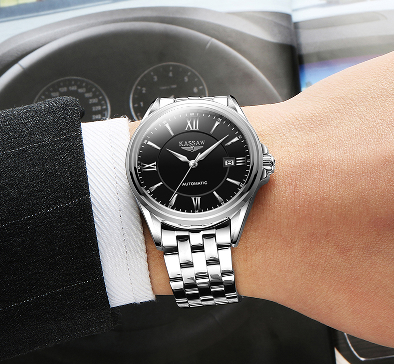✨Đồng hồ nam chính hãng KASSAW K818-3 Kính sapphire chống xước ,Chống nước 50m ,Bảo hành 24 tháng,Máy cơ (Automatic),mặt đen dây thép xịn