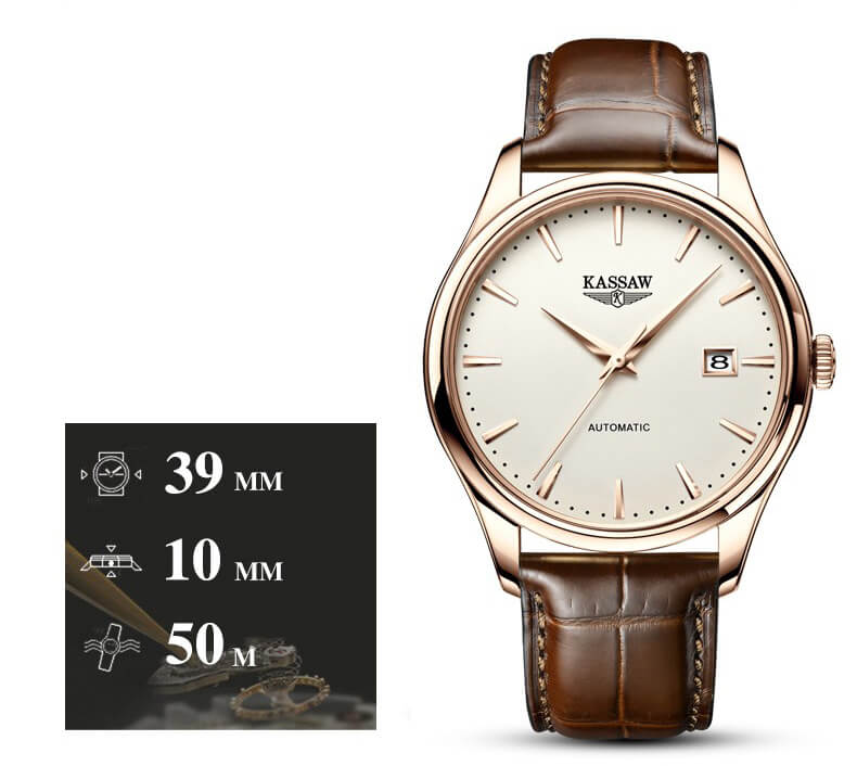 Mua tại TiktokĐồng hồ nam chính hãng Kassaw Thụy Sỹ Thiết kế sang trọng, đẳng cấp cho quý ông Thời gian trữ cót lâu lên đến 40h Chống nước 5ATM, Kính sapphire Toàn bộ máy được làm từ thép không gỉ 316L Đồng hồ cơ Automatic, Sử dụng bộ máy Seiko Nh35A Chính hãng