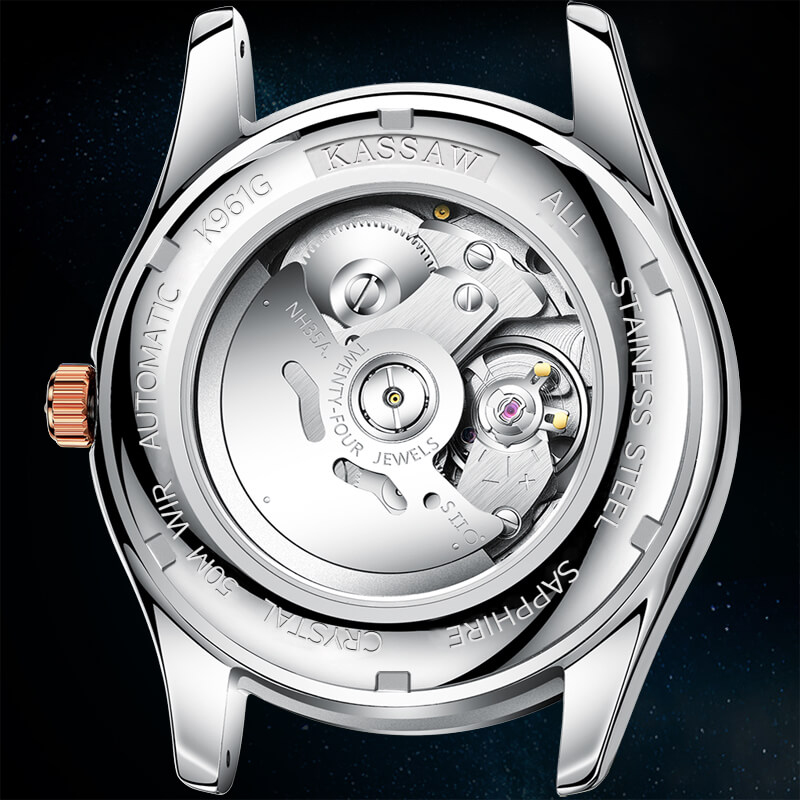 Đồng hồ nam chính hãng Kassaw Thụy Sỹ Thiết kế sang trọng, đẳng cấp cho quý ông Thời gian trữ cót lâu lên đến 40h Chống nước 5ATM, Kính sapphire Toàn bộ máy được làm từ thép không gỉ 316L Đồng hồ cơ Automatic, Sử dụng bộ máy Seiko NH35A Chính hãng