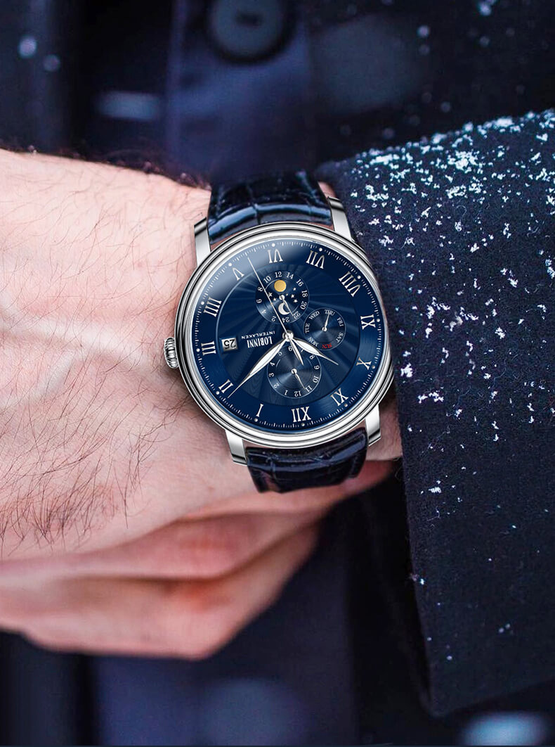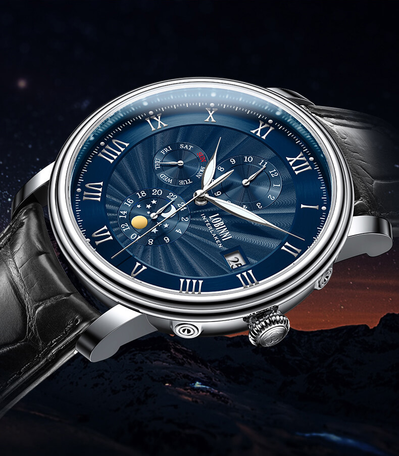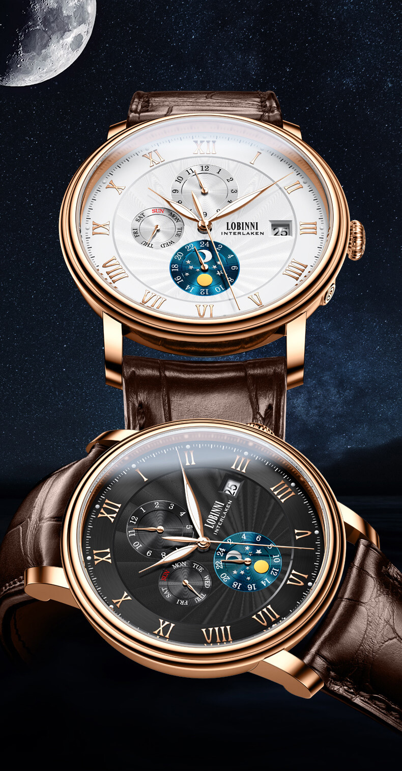 Đồng hồ nam chính hãng LOBINNI Thụy Sỹ Thiết kế sang trọng, đẳng cấp cho quý ông Thời gian trữ cót lâu lên đến 40h Chống nước 5ATM, Kính sapphire Toàn bộ máy được làm