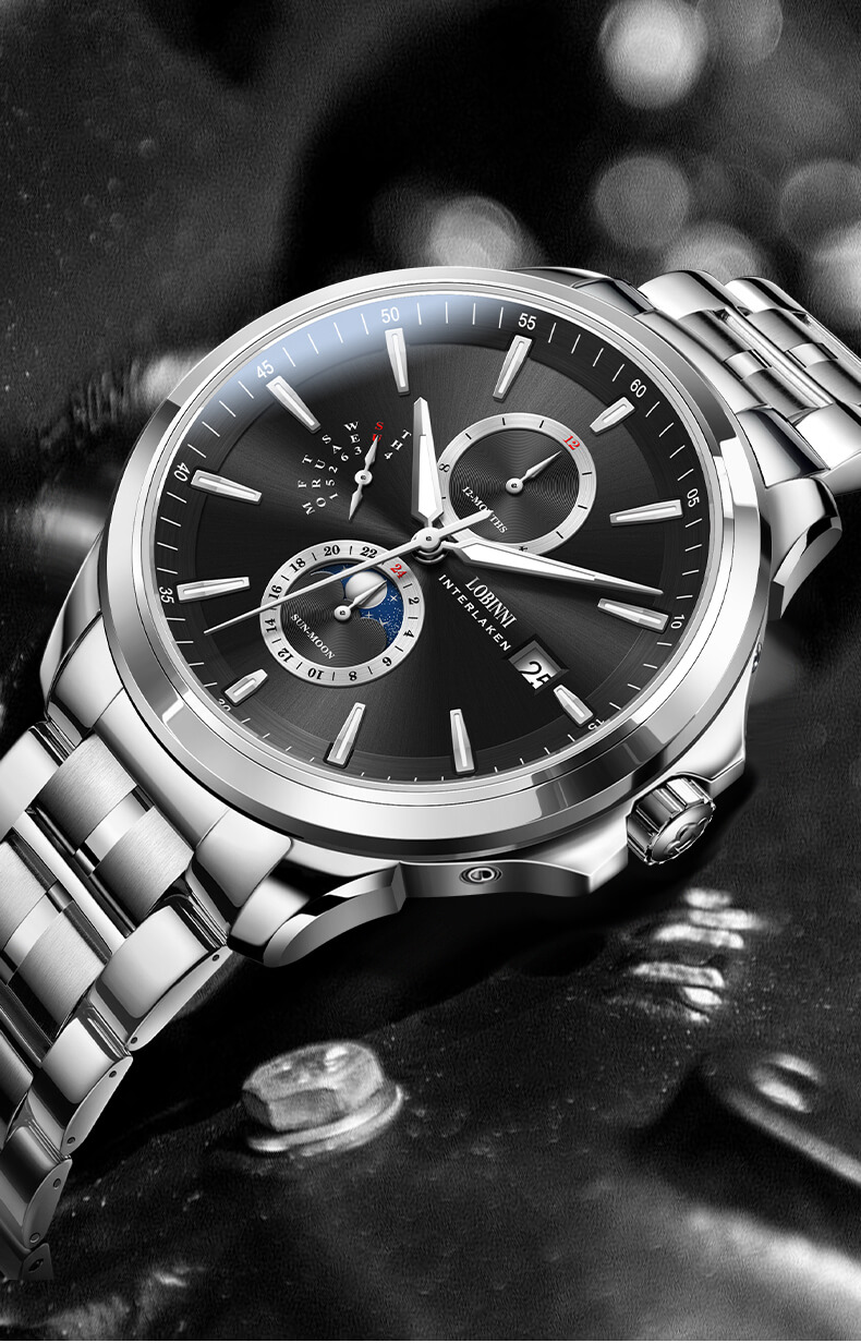 Đồng hồ nam chính hãng LOBINNI Thụy Sỹ Thiết kế sang trọng, đẳng cấp cho quý ông Thời gian trữ cót lâu lên đến 40h Chống nước 5ATM, Kính sapphire Toàn bộ máy được làm