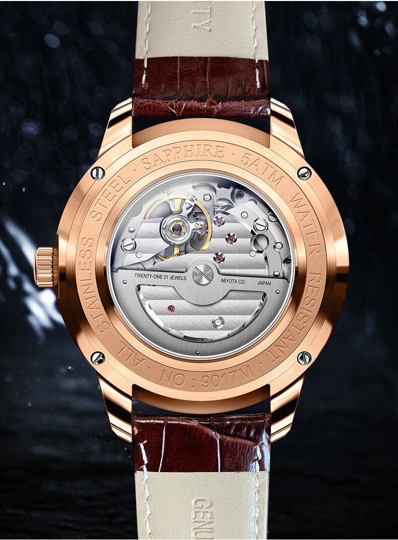 Lobinni No.9017 sử dụng bộ máy cơ truyền thống, những chuyển động mượt mà có thể thuyết phục bất cứ trái tim yêu thích đồng hồ nào.
