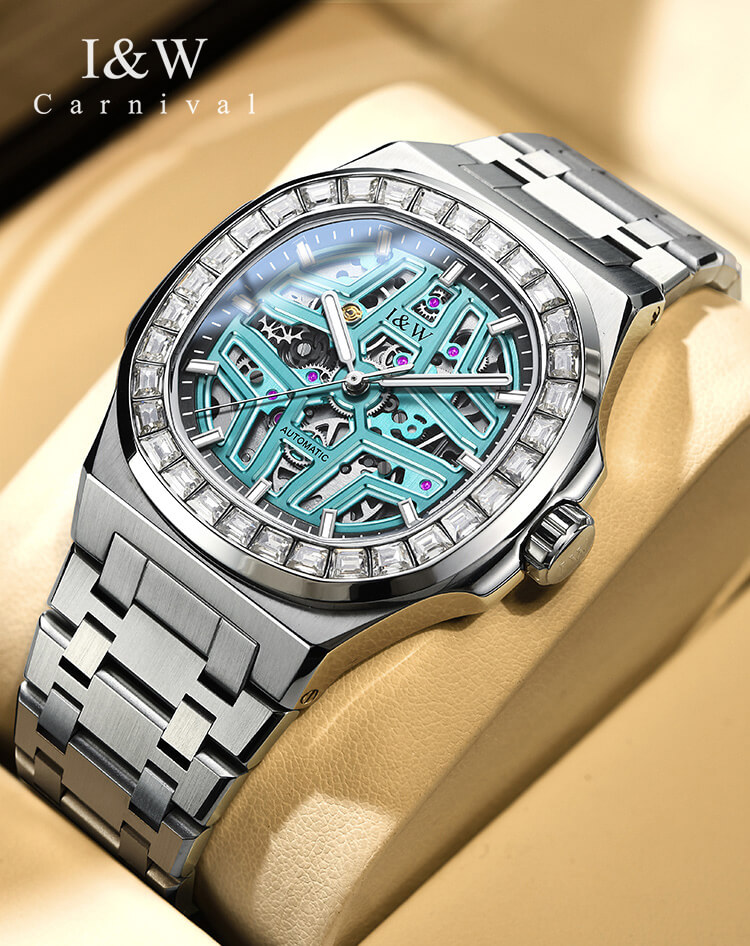 ✨Đồng Hồ Nam I&W Carnival 763G1 Chính Hãng Full Box Chống Nước Kính Chống Xước Dây Thép Cao Cấp BH24T (Máy Cơ Tự Động)