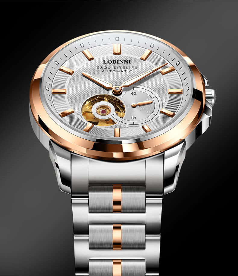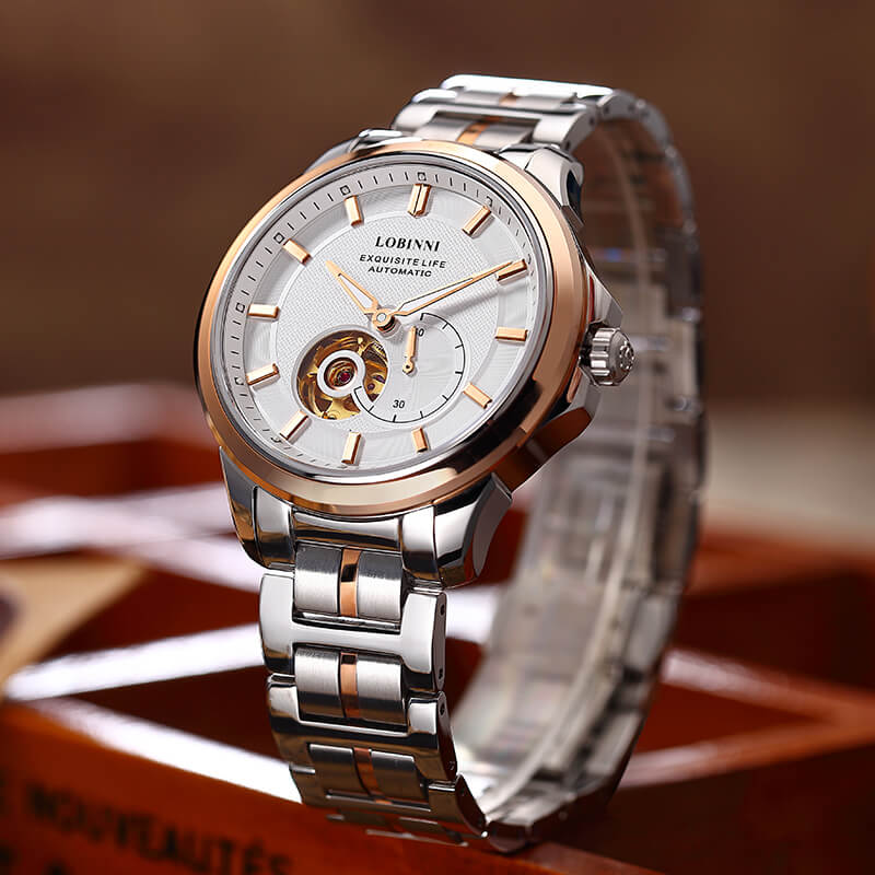Đồng hồ nam chính hãng LOBINNI Thụy Sỹ Thiết kế sang trọng, đẳng cấp cho quý ông Thời gian trữ cót lâu lên đến 40h Chống nước 5ATM, Kính sapphire Toàn bộ máy được làm