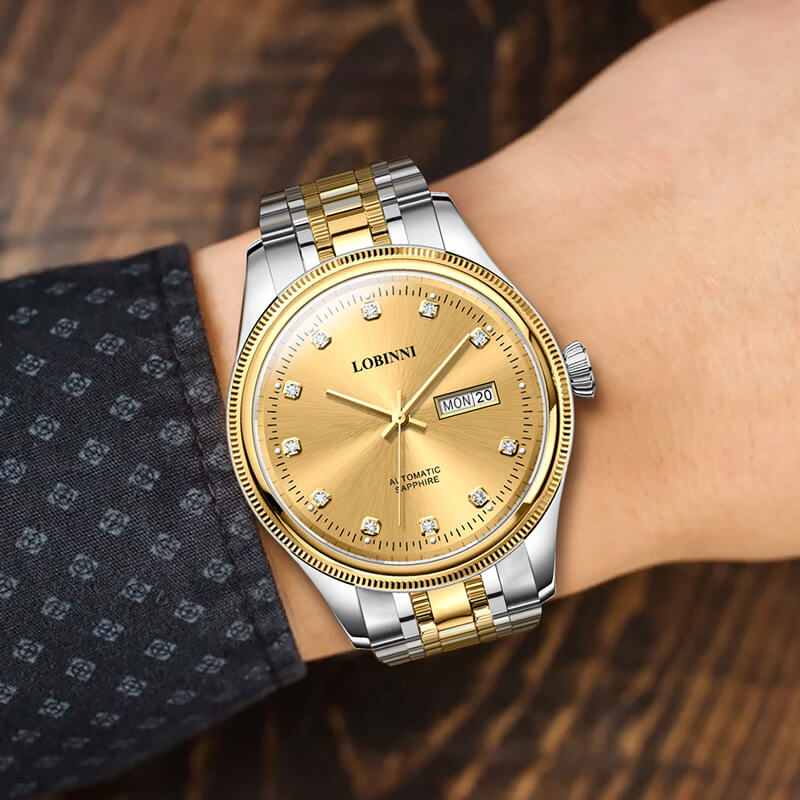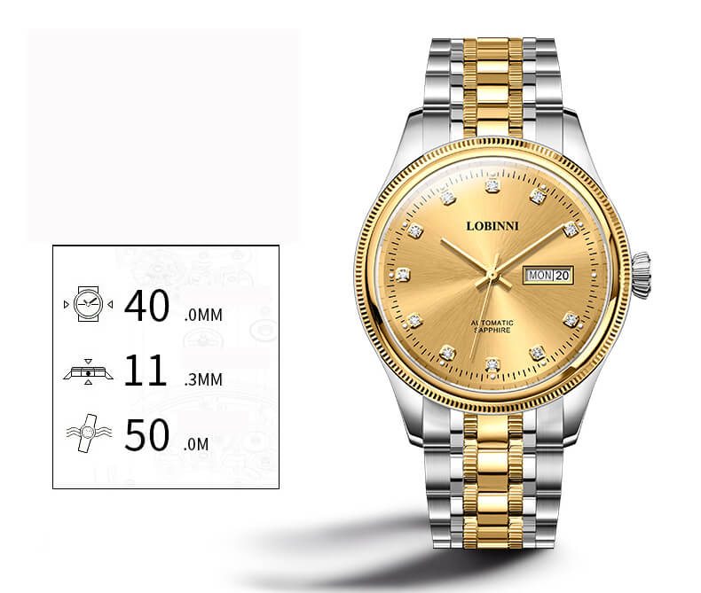 Đồng hồ nam chính hãng LOBINNI Thụy Sỹ Thiết kế sang trọng, đẳng cấp cho quý ông Thời gian trữ cót lâu lên đến 40h Chống nước 5ATM, Kính sapphire Toàn bộ máy được làm