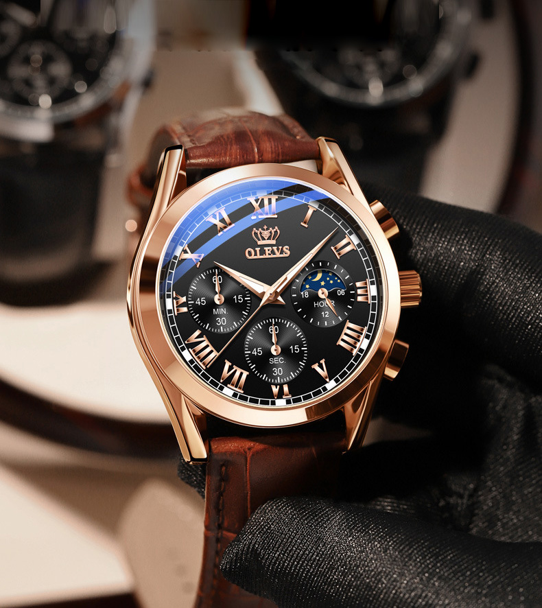 Đồng Hồ Nam OLEVS-2871 Phong Cách Doanh Nhân - Lịch Trăng Sao - Chạy Đủ 6 Kim - Hàng Chính Hãng