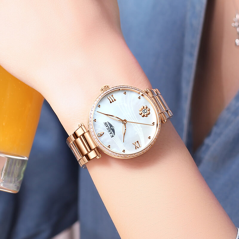 Đồng hồ nữ chính hãng kassaw Thụy Sỹ Thiết kế hiện đại,sang trọng dành cho phái nữ Thời gian trữ cót lâu lên đến 40h Chống nước 5ATM, Kính sapphire Toàn bộ máy được làm