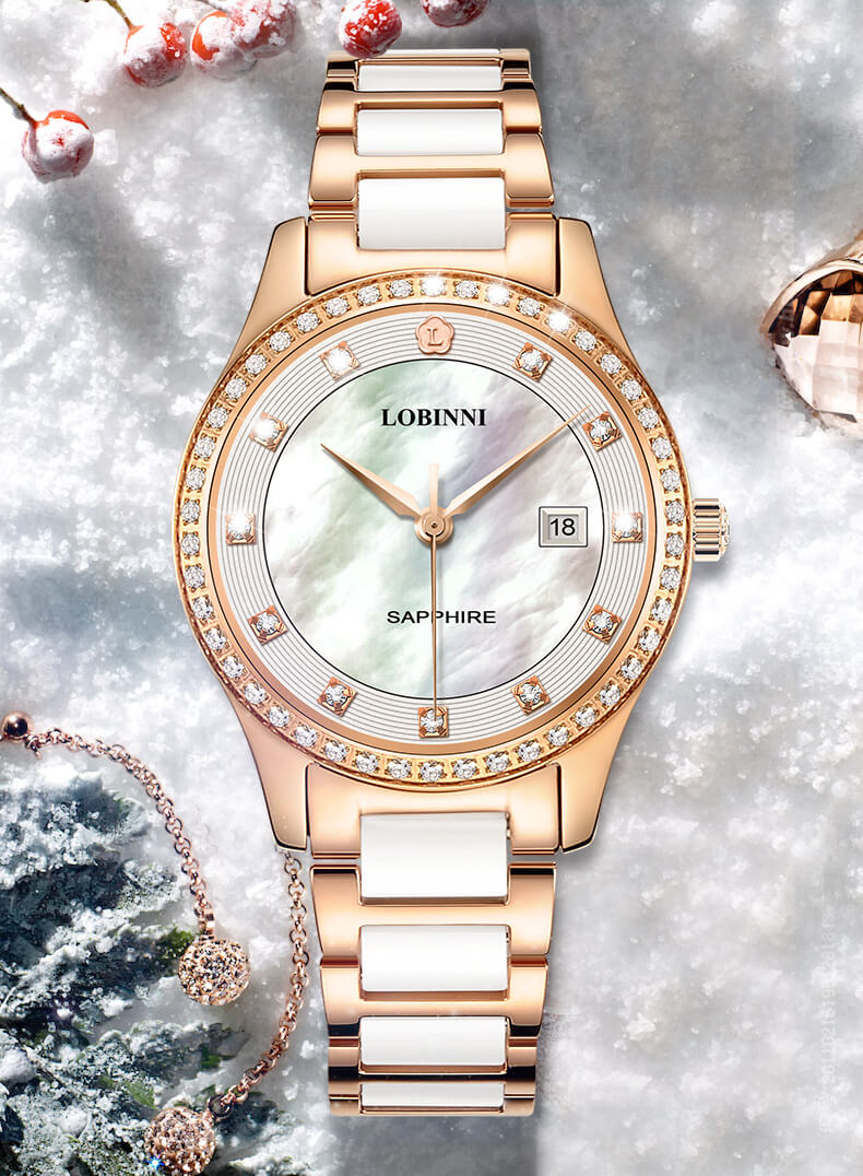 Đồng hồ nữ chính hãng Lobinni Thụy Sỹ Thiết kế hiện đại,sang trọng dành cho phái nữ Thời gian trữ cót lâu lên đến 40h Chống nước 5ATM, Kính sapphire Toàn bộ máy được làm