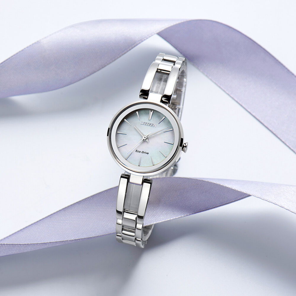 Cận Cảnh Đồng Hồ Citizen Nữ Dây Kim Loại Eco-Drive EM0631-83D