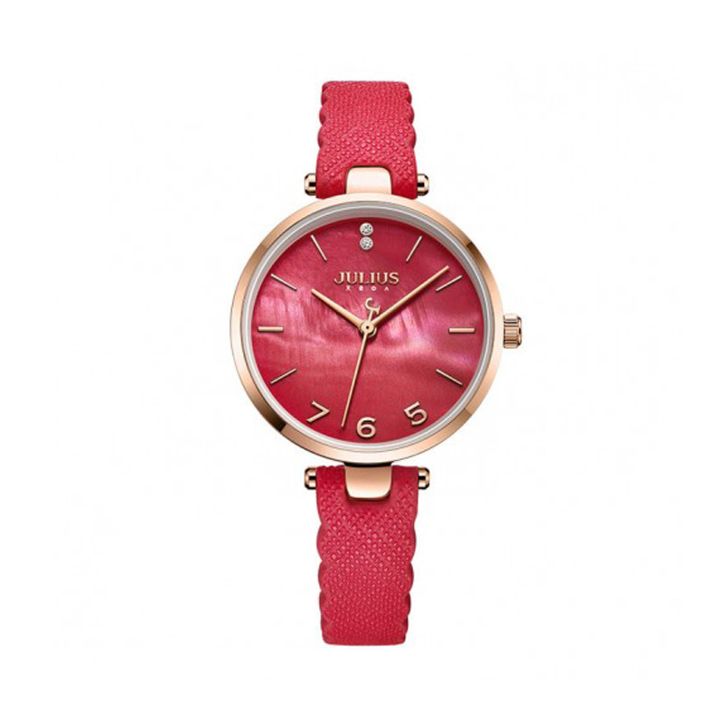 THÔNG SỐ SẢN PHẨM Thương hiệu: JULIUS Hàn Quốc Mã sản phẩm: JA-1096C (Đỏ) Dành cho: Nữ giới, yêu thích thời trang và phá cá Chất liệu dây: Dây da Genuine Leather bền bỉ Chất liệu mặt kính: Mặt kính