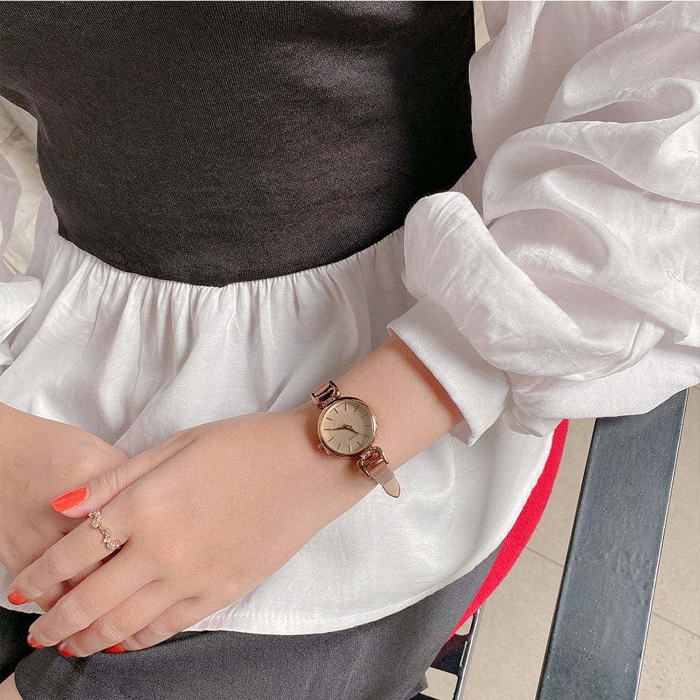 Chiếc đồng hồ thích hợp với các bạn nữ yêu thích sự trẻ trung, quyến rũ và với thiết kế nhỏ nhắn nhẹ nhàng cho nữ giới dây da tối màu giúp bạn dễ phối