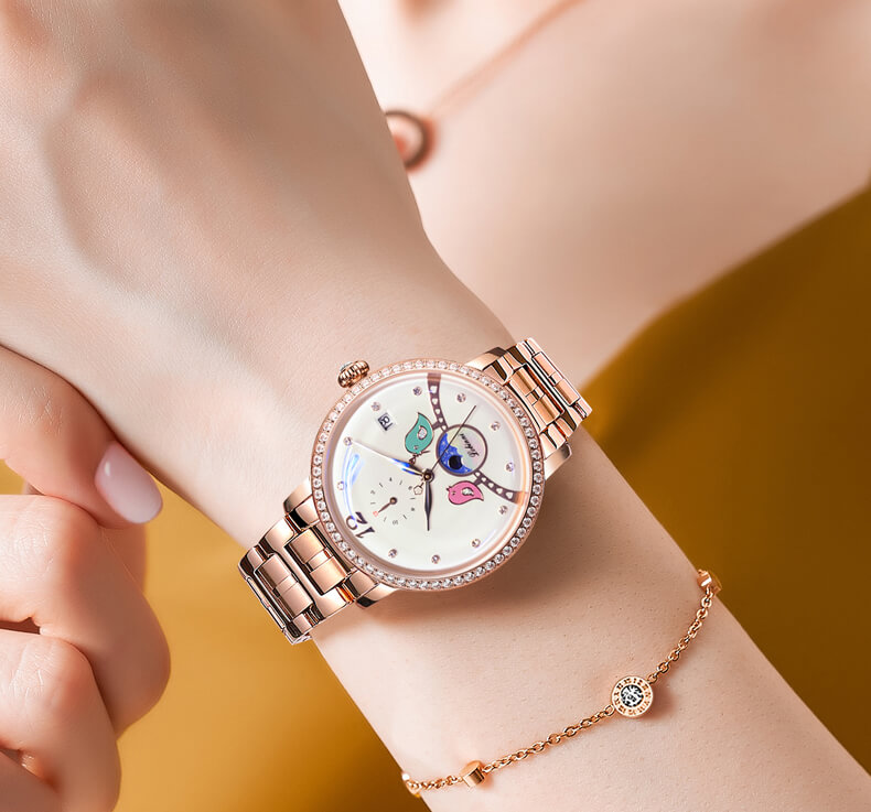 Đồng hồ nữ chính hãng kassaw Thụy Sỹ Thiết kế hiện đại,sang trọng dành cho phái nữ Thời gian trữ cót lâu lên đến 40h Chống nước 5ATM, Kính sapphire Toàn bộ máy được làm