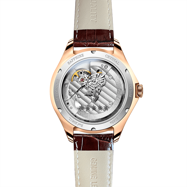 NGUỒN GỐC VÀ THÔNG SỐ SẢN PHẨM Thương Hiệu LOBINNI Mã sản phẩm L2065-3 Giới tính Nữ Loại sản phẩm Đồng hồ cơ (Automatic) Đường kính mặt 36 mm Chiều dày 9.7 mm Chất liệu