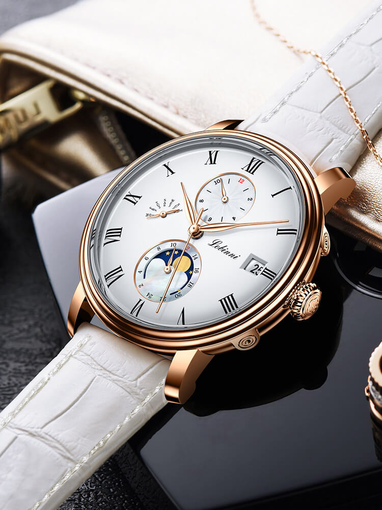 Được đánh giá là mẫu đồng hồ nữ xuất sắc nhất trong dòng Eleganza của thương hiệu Thụy Sỹ Lobinni L2075 là mẫu đồng hồ nữ automatic được hội chị em cực kì yêu thích.