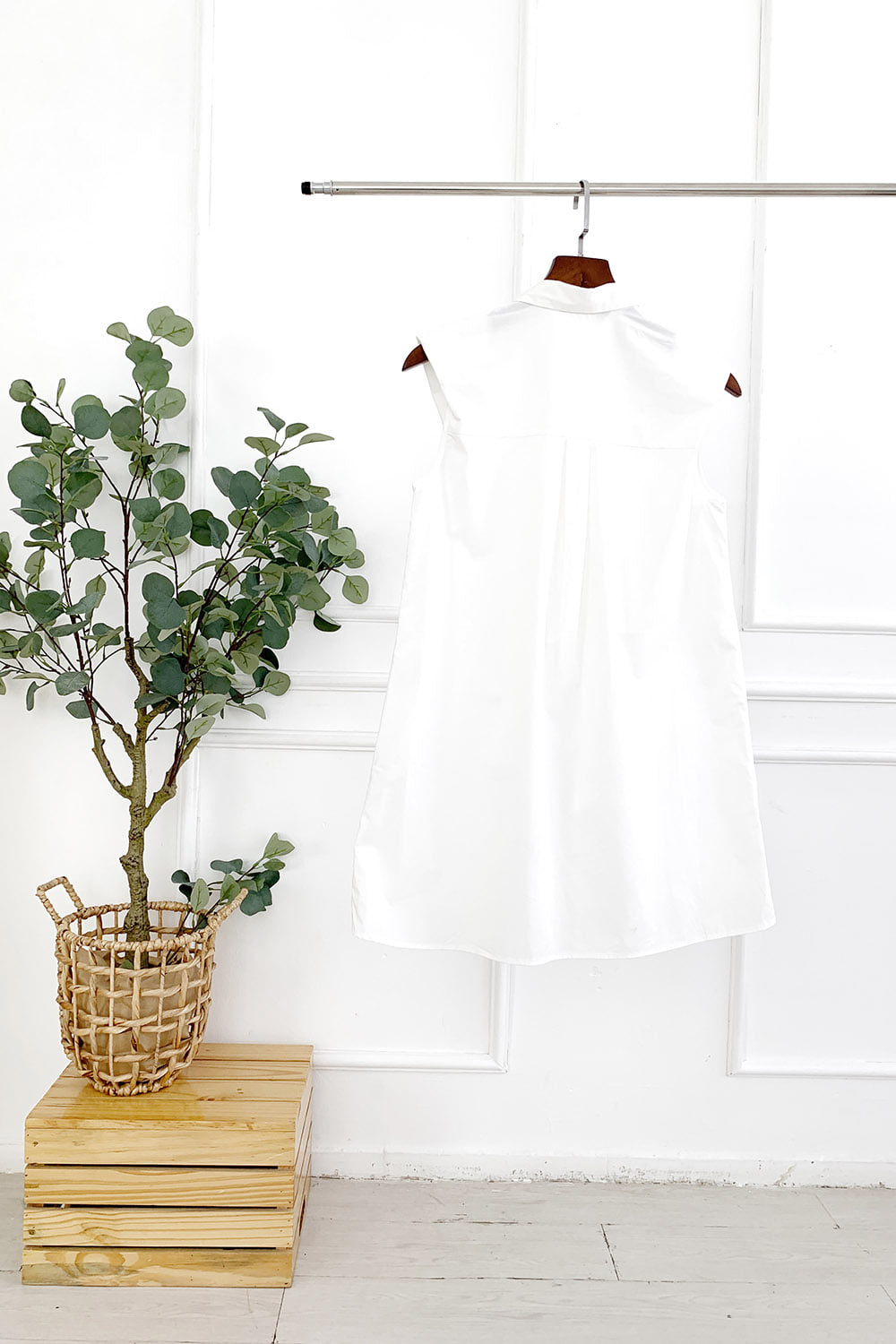 Đầm Sơ Mi Cotton, chất liệu cotton mềm mại, mỏng nhẹ. Phần trước ngực đính hạt tạo hình lá độc đáo. Có túi 2 bên hông, Mặc phối với quần short hoặc legging bên trong.