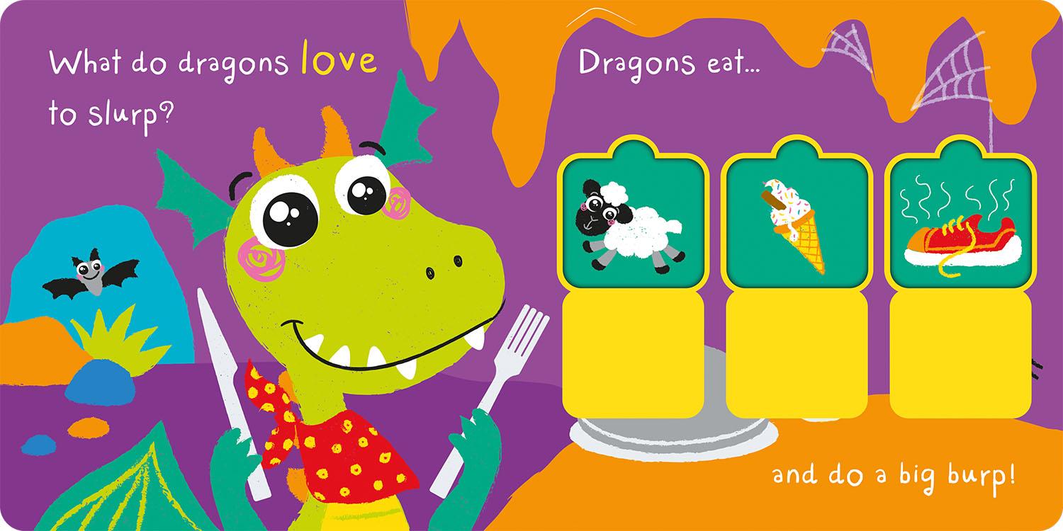 Choose from fifteen lift-the-flaps to create a funny story and decide what happens next. Dragons LOVE Ice Cream! encourages imaginative play as the reader chooses and creates their own story, again and again.