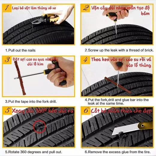 Bạn là người yêu thích sự tự chủ và muốn giữ lốp xe của mình luôn ở trạng thái hoạt động tốt? Dụng Cụ Vá Lốp Xe Máy Ô Tô Không Săm là giải pháp hoàn hảo cho bạn!