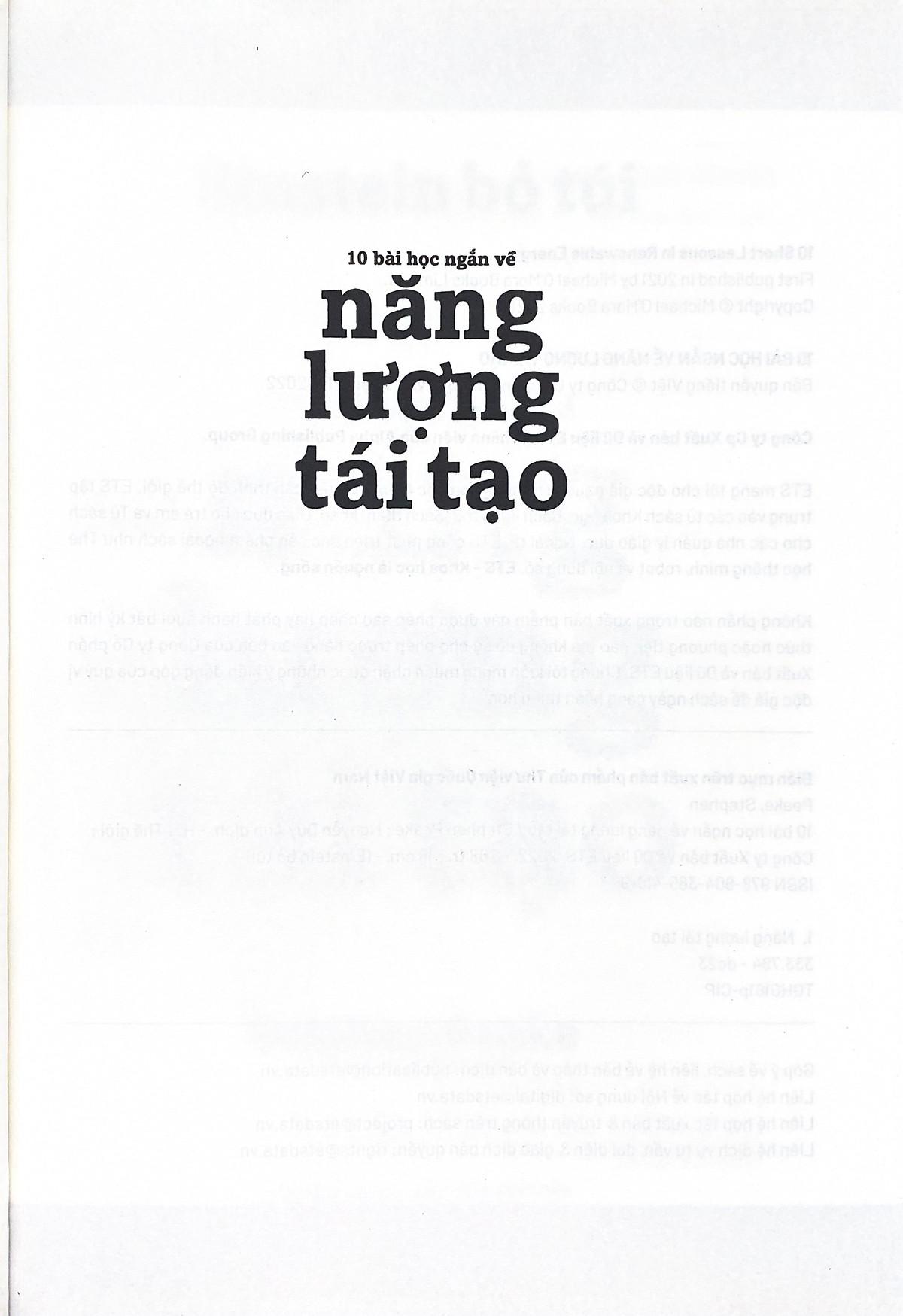 Năng lượng tái tạo là trọng tâm trong việc xử lý tình trạng biến đổi khí hậu và cung cấp năng lượng bền vững. 10 bài học ngắn về năng lượng tái tạo chắt lọc những vấn đề chính của chủ đề thời sự này và nghiên cứu cách khai thác hiệu quả nhất sức mạnh của một loạt các công nghệ năng lượng đột phá nhằm vươn tới một tương lai năng lượng bền vững.