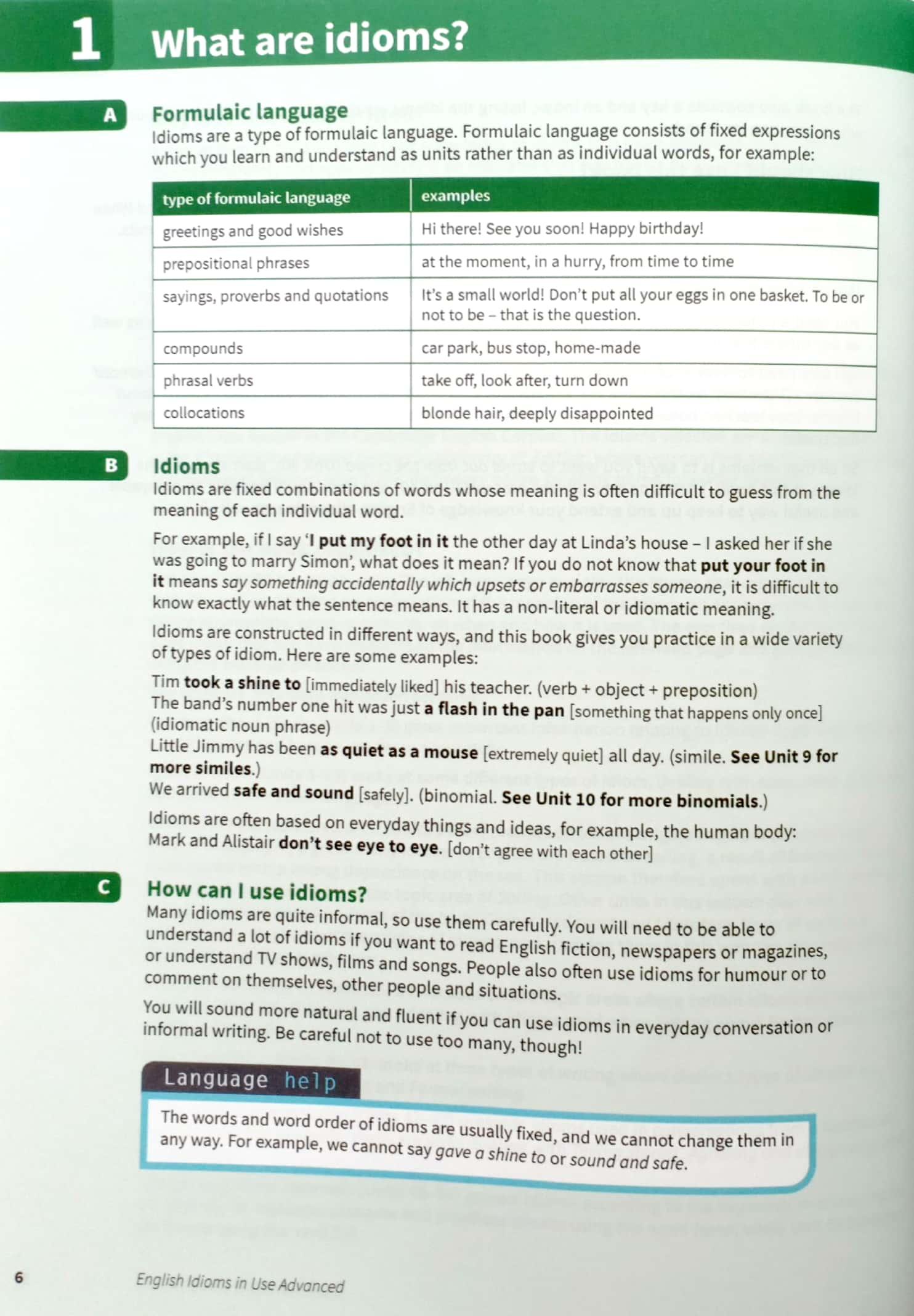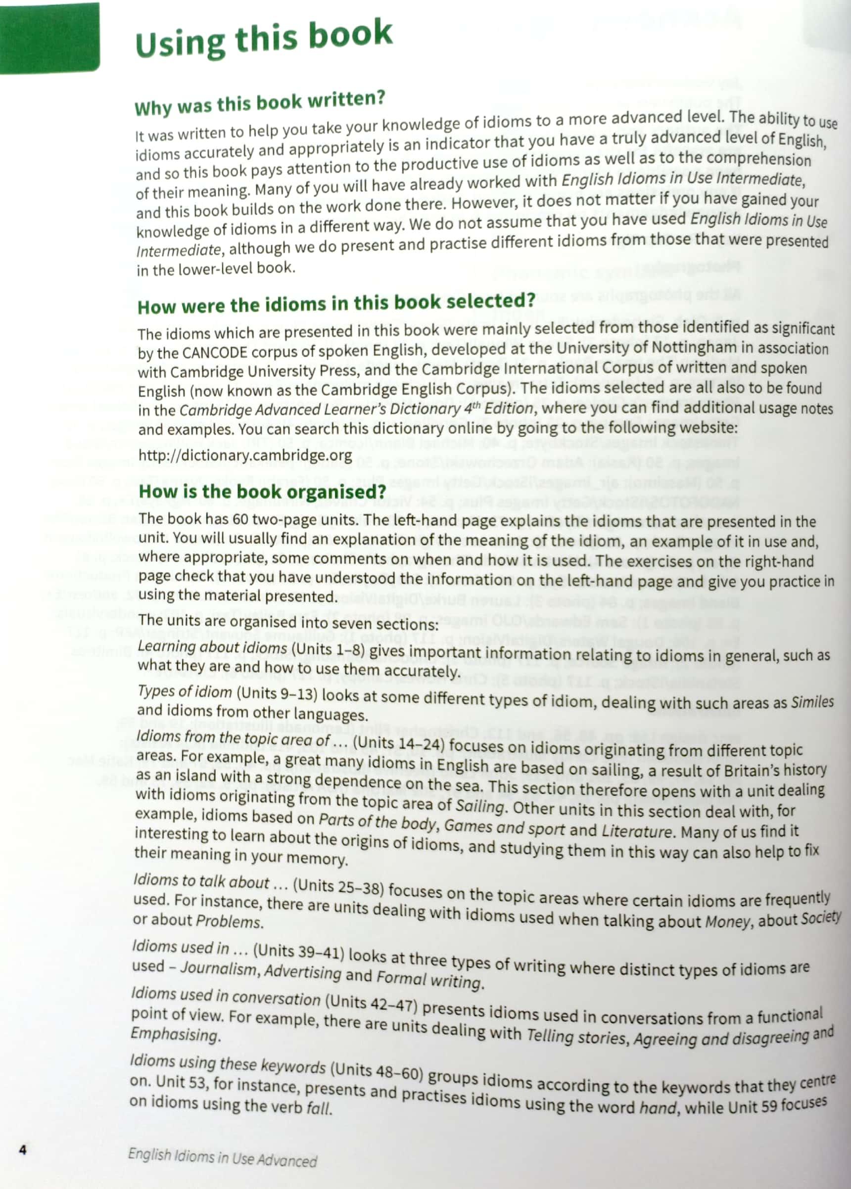 Improve your understanding of idioms in English. Explanations and practice of English idioms, written for advanced-level (C1 to C2) learners of English. Perfect for both self-study and classroom activities. Learn idioms in context, with lots of different topics, including 'Learning', 'Formal writing' and 'Telling stories'. Be confident about what you are learning, thanks to Cambridge research into how English is really spoken and written, and get better at studying by yourself, with study tips, follow-up tasks and an easy to use answer key.