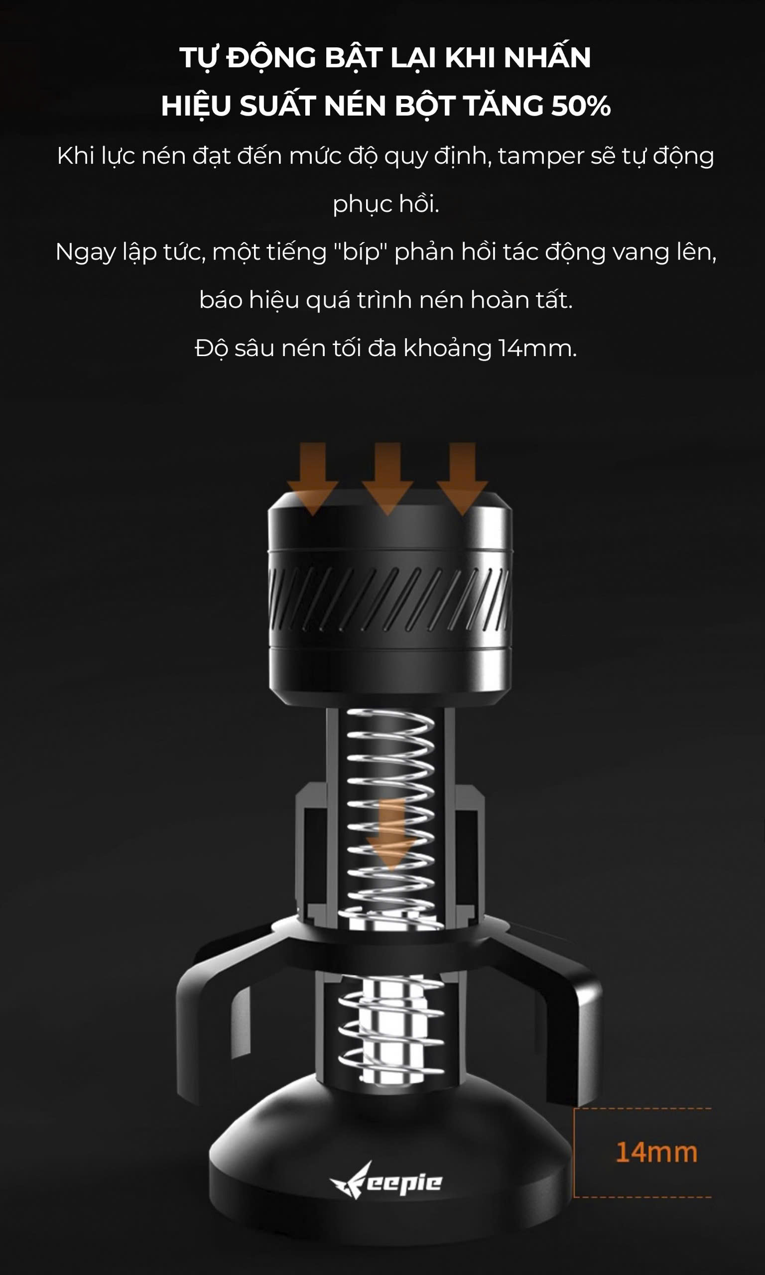 FEEPIE KIM XOAY TÁN BỘT CÓ VÒNG ĐỆM CAO SU – TỐI ƯU CHIẾT XUẤT, CẢI THIỆN CREMA! Bạn muốn phân bố bột cà phê đều hơn, hạn chế kênh rãnh để có chiết xuất