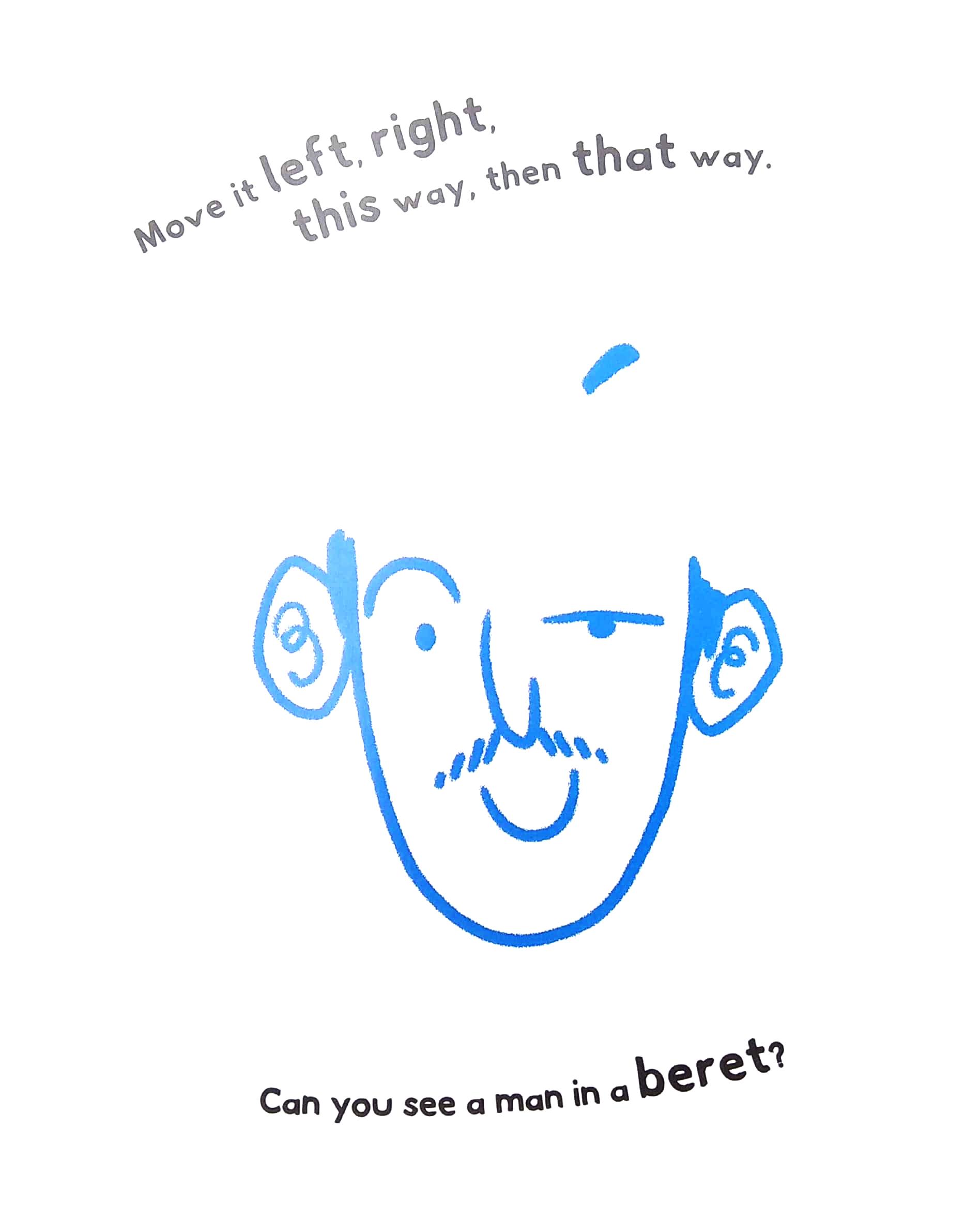 This clever book comes with a shape attached to a ribbon, for manoeuvring around! Read the clues and move the shape around until you complete the picture.What can it be, what can you see?