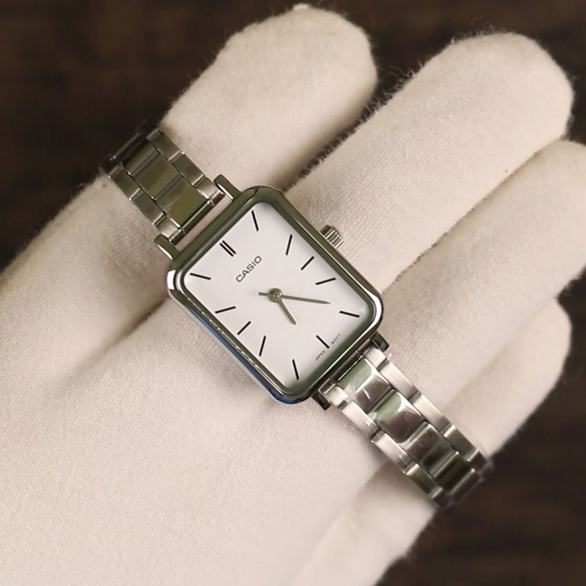 Đồng hồ Casio LTP-V009G-7EUDF thuộc Casio nữ dây kim loại mạ vàng, nền mặt màu trắng, chống nước.