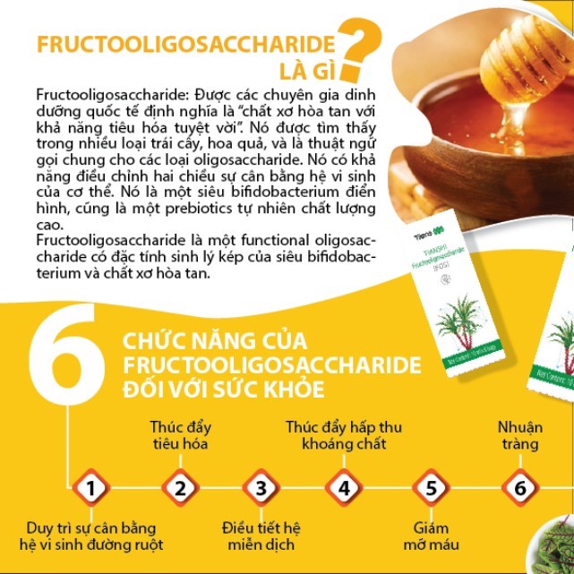 Fructooligosaccharide (FOS)- Thiên Sư - Siro fos Tiens Sản phẩm giàu chất xơ hòa tan phong phú, là nhân tố kích thích sự phát triển của những vi khuẩn hữu ích bifidobateria sống trong đường