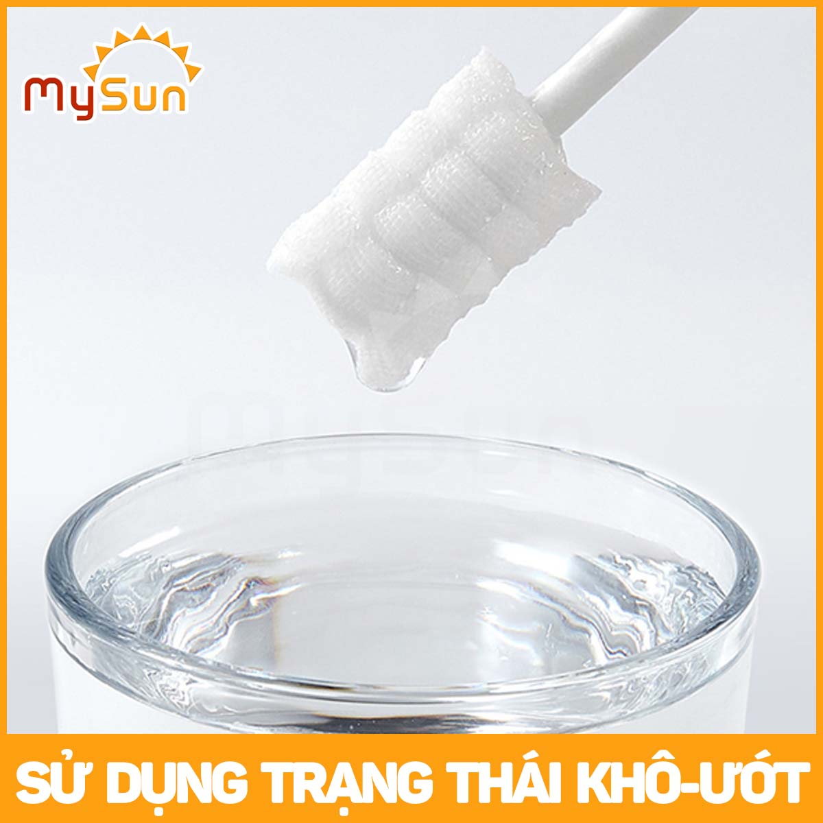Gạc Rơ/ Tưa Lưỡi Cho Bé MySun 30 Que, Dệt Sợi Cotton 100% Giới thiệu Trong giai đoạn tháng sơ sinh, em bé cần được vệ sinh miệng lưỡi thường xuyên. Việc vệ rơ lưỡi