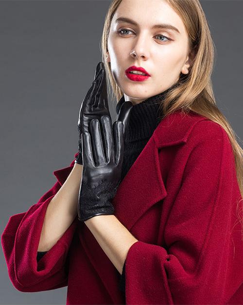 Găng tay nữ da cừu phối lông BHY5608 Lót lông siêu ấm, size M L XL