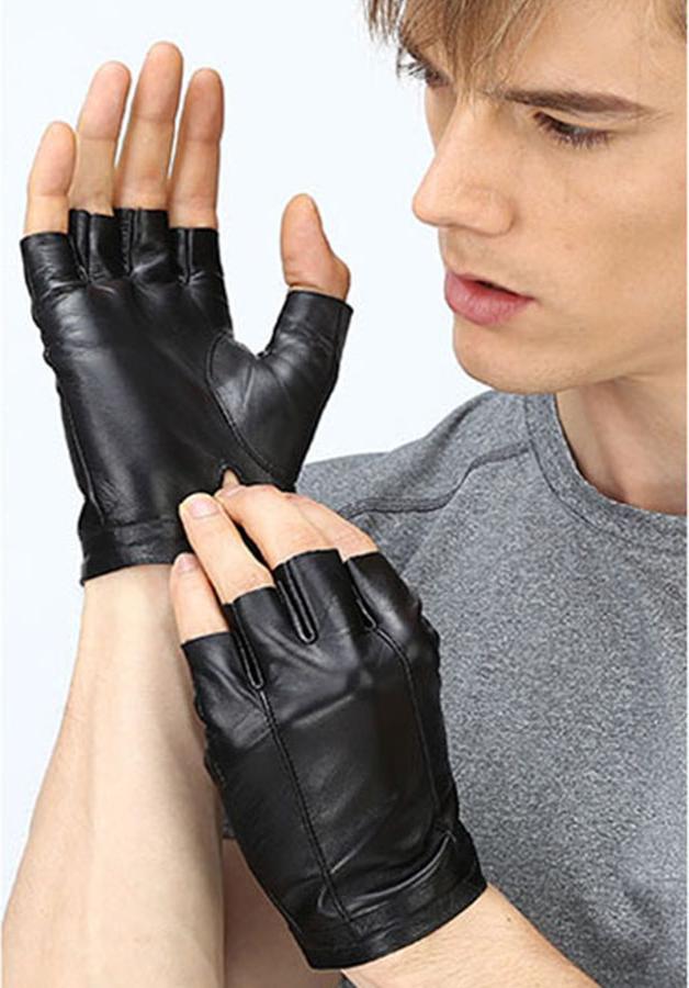 Găng tay nam hở ngón - BHY5293 Bao da phượt. Chuẩn da cừu. Size M L XL