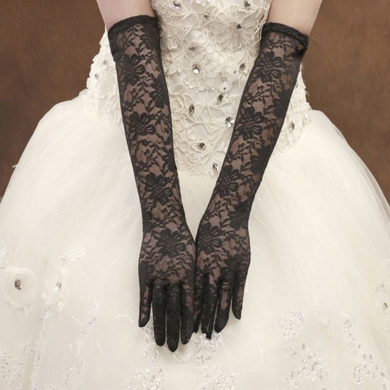 Độ dài: dài ngang khuỷu tay: 39 cm Màu sắc: đen Thích hợp cho phục trang cô dâu, cho phụ nữ đi tiệc, dạ hội, sự kiện.