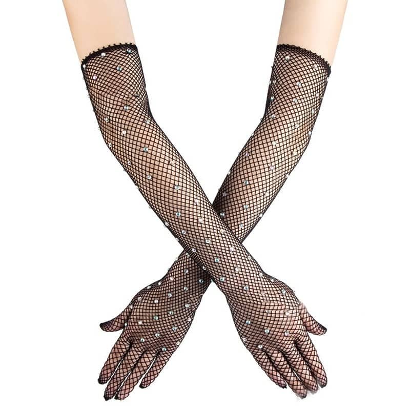 ✨Găng tay sang chảnh màu đen dạng lưới đính đá lấp lánh cho Cô dâu và Dạ hội, đi tiệc, sự kiện, lễ hội MS: 42951