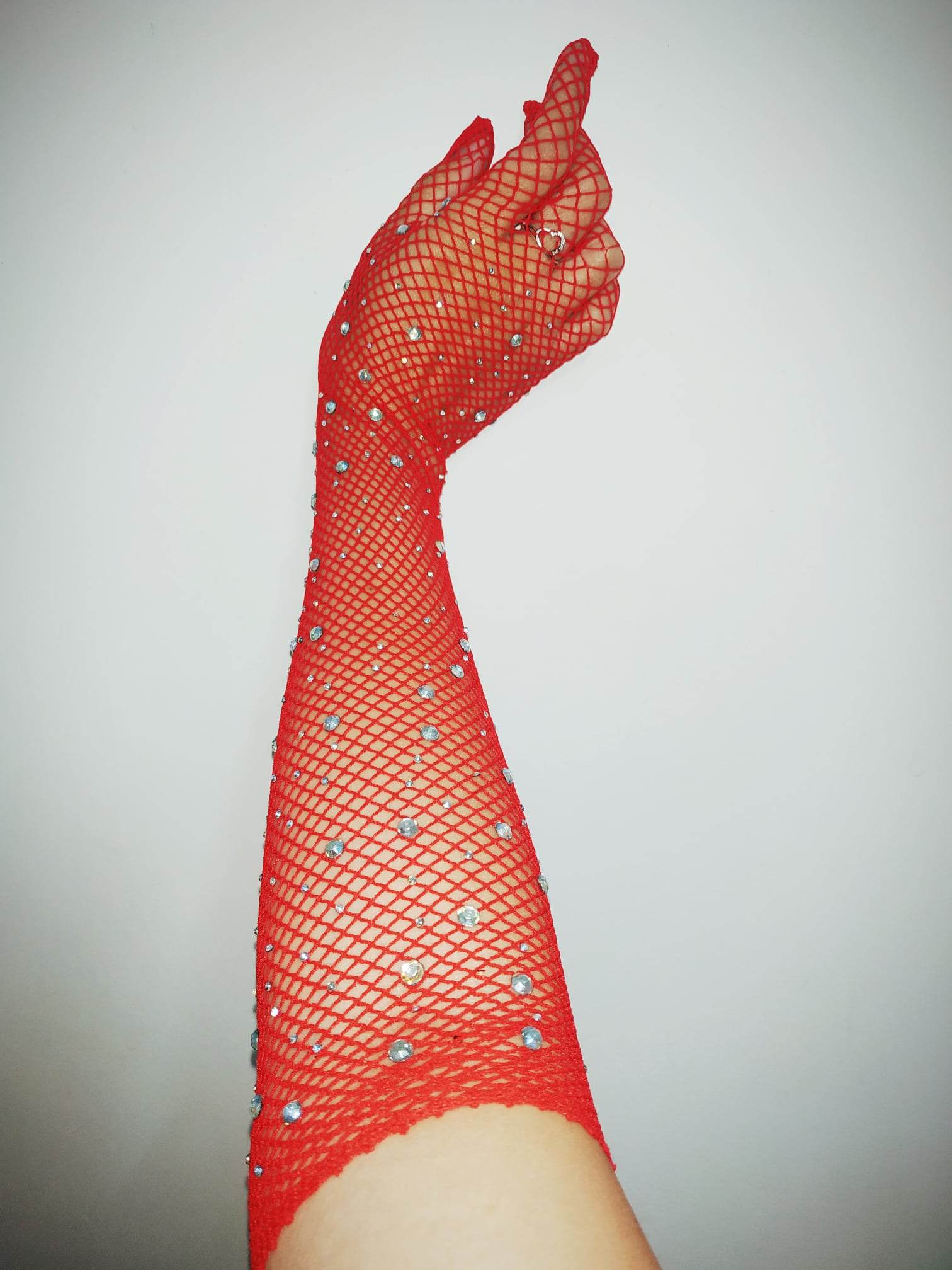 ✨Găng tay sang chảnh màu đỏ dạng lưới đính đá lấp lánh cho Cô dâu và Dạ hội, đi tiệc, sự kiện, lễ hội, đạo cụ chụp ảnh, studio MS: 44839