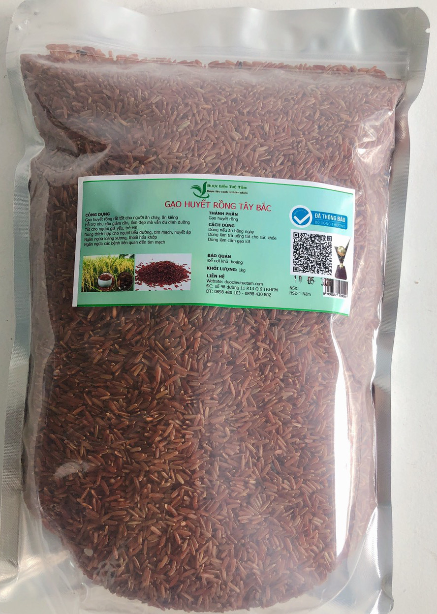 Gạo huyết rồng Phúc Thọ * Khối lượng : 01kg / Túi. Hạn sử dụng 12 tháng kể từ ngày sản xuất được ghi rõ trên vỏ hộp. * Đóng túi hút chân không bảo