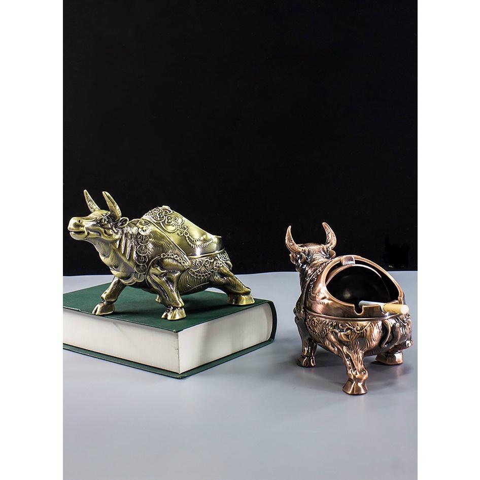 ên sản phẩm : Gạt tàn Trâu đồng Kích thước sản phẩm: 10cm×13cm×21cm Chất liệu: Hợp kim kẽm Trọng lượng sản phẩm: 500 GRAM Màu sắc: Đồng Giả Cổ và Trắng Vàng Tính năng: -