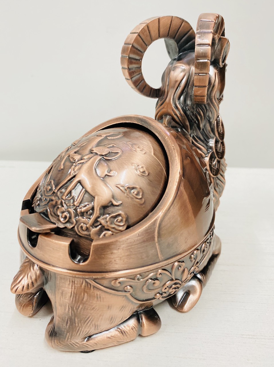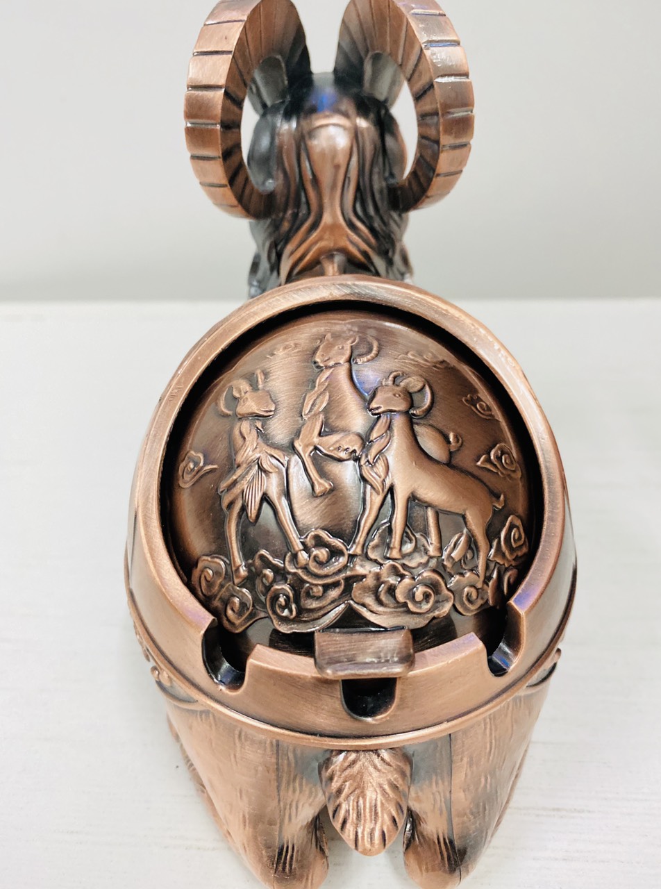 Gạt Tàn Thuốc bằng kim loại HÌNH DÊ Hoạ tiết chú DÊ ngộ nghĩnh Kích thước cao 15x9.13,5 cm Màu : Đồng đỏ