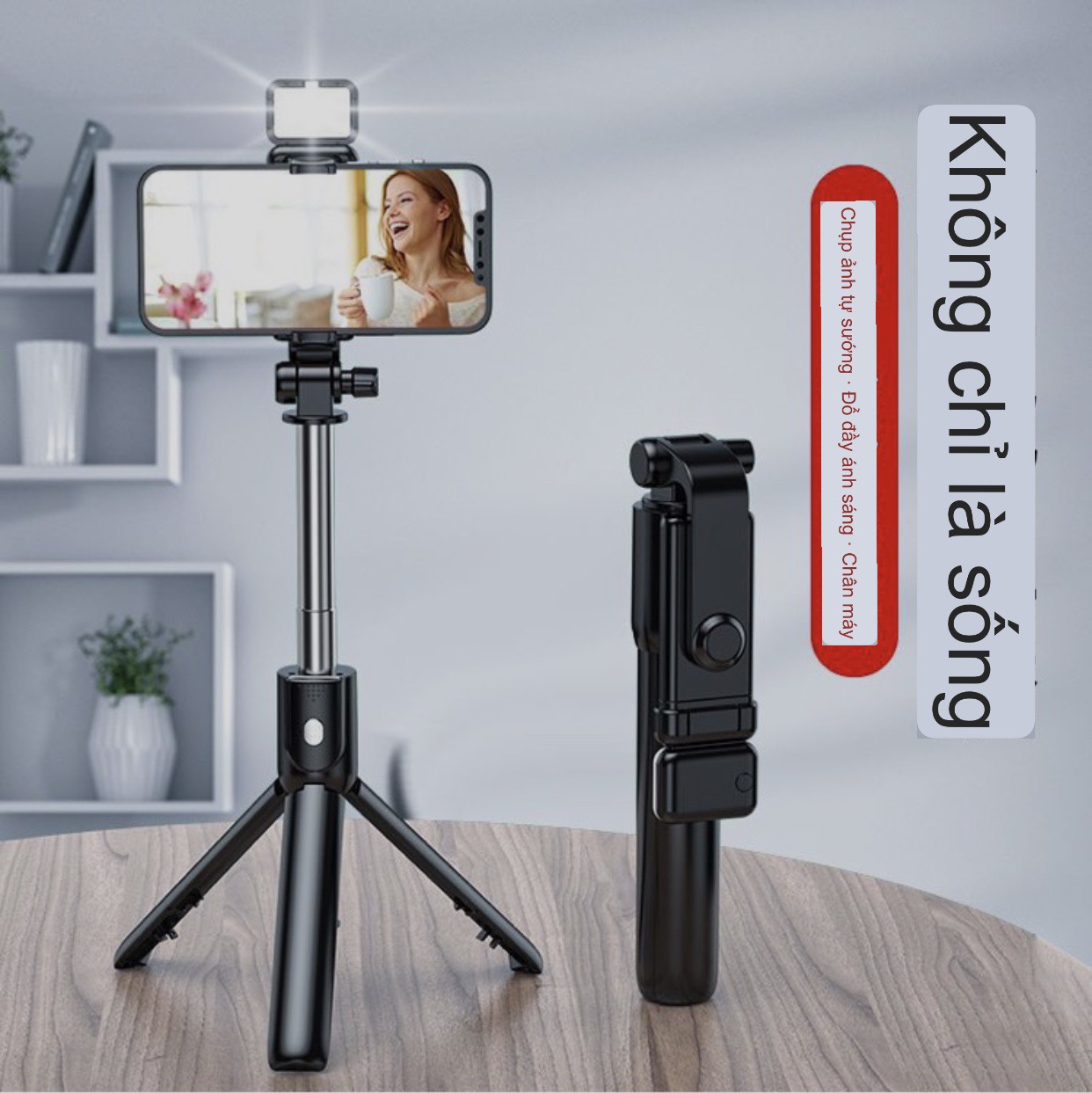 Gậy Selfie 3 Chân Kèm Đèn Trợ Sáng – Tự Sướng & Quay Video Đa Góc Độ Có Remote Bạn đang tìm kiếm một phụ kiện giúp chụp ảnh và quay video tiện lợi, chuyên