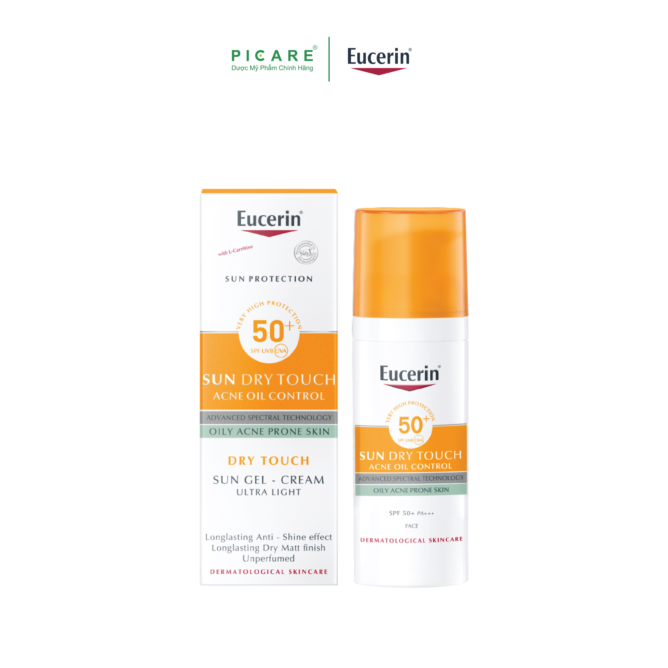 - Gel Chống Nắng Cho Da Nhờn Mụn Eucerin Sun Gel-Cream Dry Touch Oil Control SPF50+ (50ml) có thể dùng hàng ngày. Với các thành phần: - Licocalcone A & CA giúp giải quyết 80%