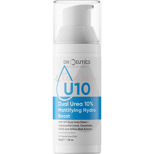 Gel DrCeutics U10 Dual Urea 10% Mattifying Hydro Boost Thành phần: Hydroxyethyl Urea, Urea: Giúp da ngậm nước, giữ ẩm và tăng độ đàn hồi cho da. Urea hỗ trợ phục hồi các thương tổn