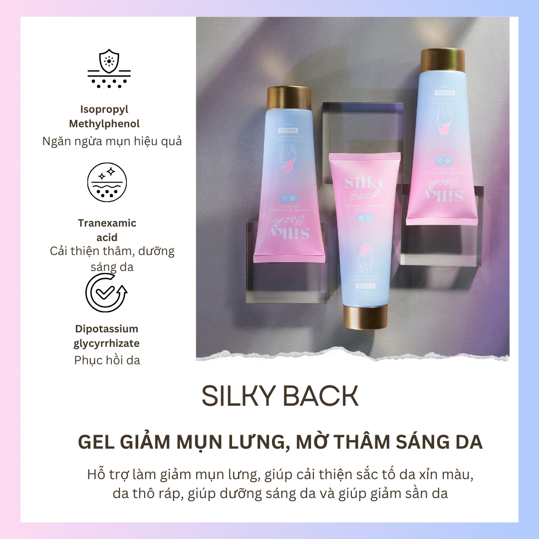 Chúng tôi cam kết mang đến sản phẩm chất lượng cao nhất, giúp bạn tự tin với làn da khỏe đẹp và mịn màng. Hãy trải nghiệm ngay Gel giảm mụn lưng Silky Back và cảm nhận sự khác biệt!