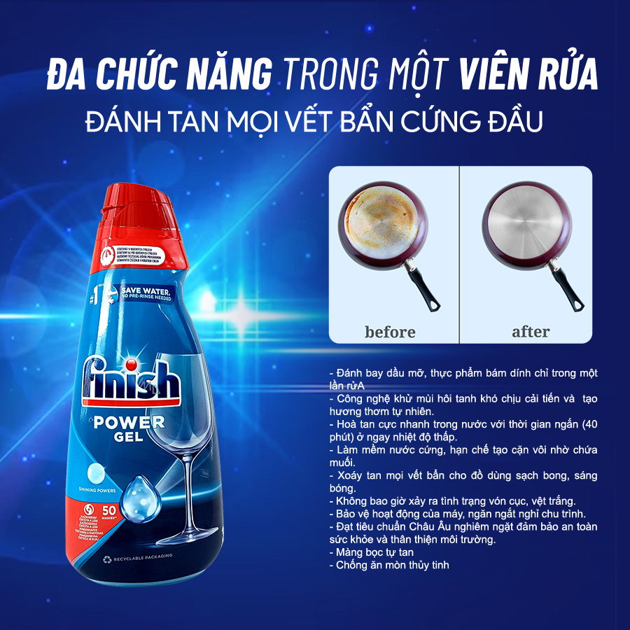 - FINISH 900ml All in 1 Max Power Gel 0% Zero Gel rửa bát đậm đặc cho 45 lần rửa. - Sạch sẽ và sáng bóng, ngay cả trong chu kỳ ngắn - Công thức