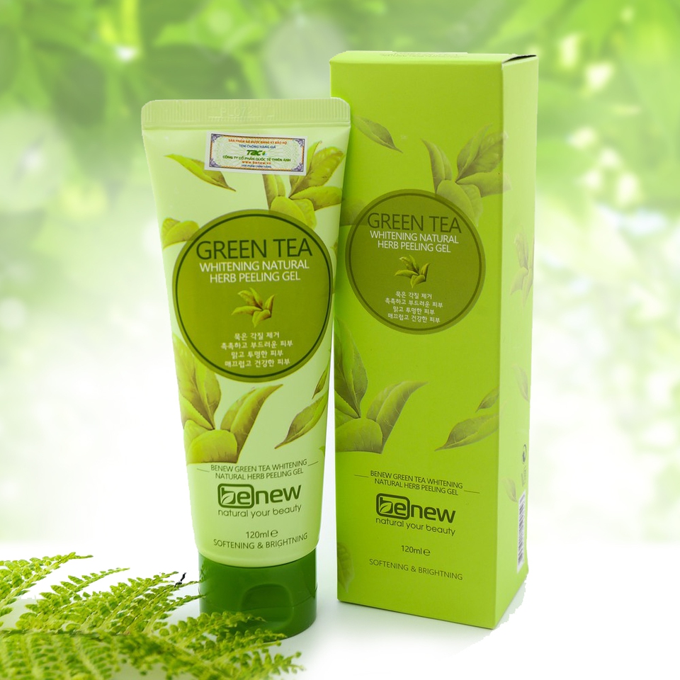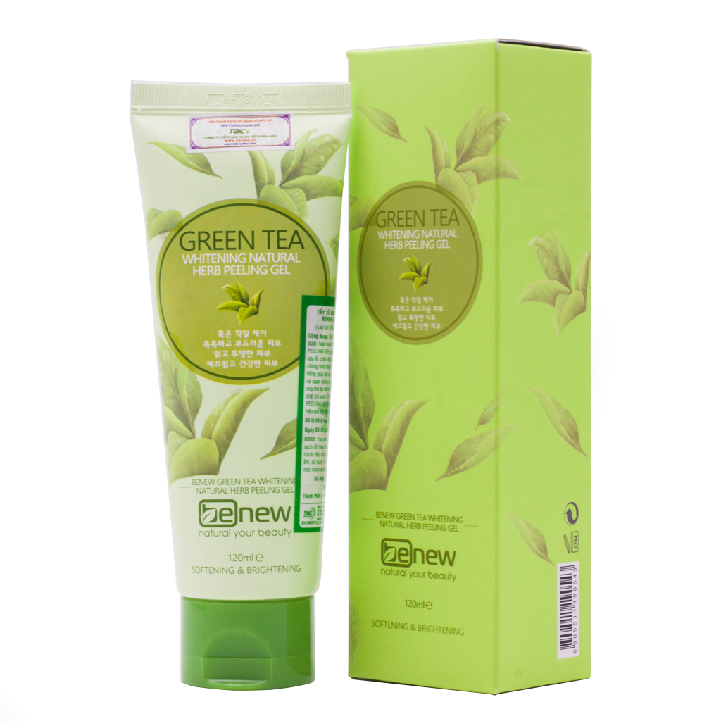 - Tẩy Tế Bào Chết Trà Xanh Hàn Quốc Benew Green Tea Peeling Gel (120ml) chứa tinh chất trà xanh thiên nhiên kết hợp với các loại thảo dược giúp giảm thiểu tế bào da