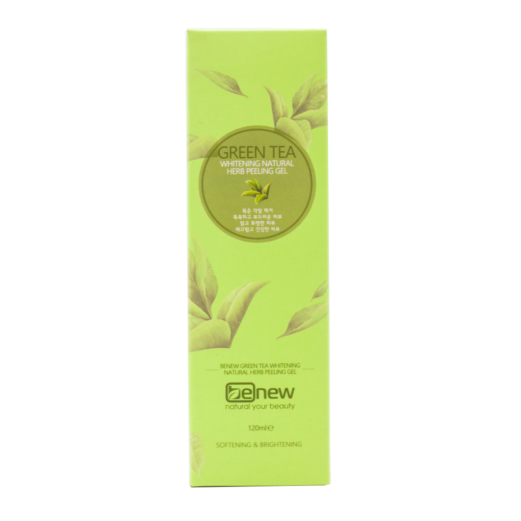 · Benew Green Tea Whitening Natural Herb Peeling Gel là sản phẩm tẩy tế bào chết dạng gel có chứa chiết xuất từ trà xanh và thảo dược giúp giảm thiểu tế bào da chết và giúp ngăn ngừa mụn trước khi chúng hình thành.