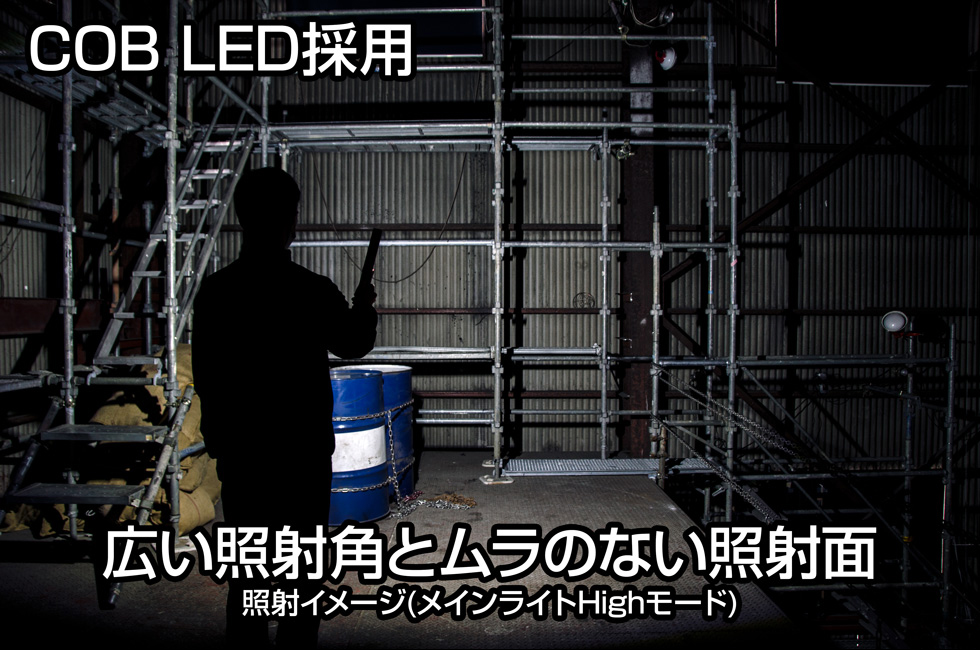 Nguồn sáng được sử dụng: LED trắng loại chip độ sáng cao x 1, LED COB trắng độ sáng cao x 1 Độ sáng (xấp xỉ): 50 lumen (đèn phía trên) / 250 lumen (Chế độ tiết kiệm) / 650 lumen (Chế độ cao) Độ sáng (xấp xỉ): 19 candela (đèn phía trên) / 115 candela (ở chế độ Eco) / 258 candela (ở chế độ Cao) Pin sử dụng: Pin sạc Lithium-ion 3.7V 3.350mAh tích hợp sẵn Thời gian sạc (xấp xỉ): 5 giờ Thời gian chiếu sáng (xấp xỉ): 18 giờ (đèn phía trên) / 9 giờ (Chế độ tiết kiệm) / 3 giờ (Chế độ cao) Đặc điểm chiếu xạ: Góc chiếu xạ 165° Khoảng cách chiếu xạ (xấp xỉ): 32m (tối đa) Mức độ bảo vệ: Thông số kỹ thuật chống bụi và chống nước (tuân thủ IP64) Độ bền thả: Độ bền thả 2m Kích thước thân máy (xấp xỉ): W38.0 x H325.0 x D45.5mm Khối lượng cơ thể (xấp xỉ): 280g (bao gồm cả pin) Phụ kiện: Cáp Micro USB độc quyền (50cm), bộ đổi nguồn AC độc quyền