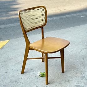 GHẾ GỖ TỰA LƯNG ĐỆM GIA - MANGO CHAIR - Kích thước: 46 x 44 x 81 cm - Chất liệu: gỗ cao su tự nhiên cao cấp bọc da - Màu sắc: gỗ sáng,